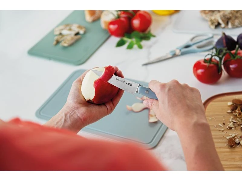 Eine heisse Kartoffel schälen, dünne Julienne-Streifen schneiden oder Shrimps ausnehmen, was auch immer für eine Kochaufgabe auf Sie wartet, dieses Schälmesser von Berghoff ist bereit, Ihnen dabei zu helfen. Dank seiner kleineren und leicht gebogenen Klinge ist es ein grossartiges Werkzeug für diese Präzisionsaufgaben. Der Griff gibt Ihnen die volle Kontrolle über die Klinge und bietet maximale Sicherheit beim Schneiden Ihrer Zutaten. Wählen Sie zwischen zwei passenden Farben und verschönern Sie Ihre Küche durch die hochglänzenden Messergriffe