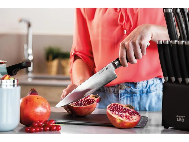 Wenn Sie erst einmal anfangen, mit diesem Kochmesser von Berghoff zu schneiden, wird es schnell zu einer festen Grösse in Ihrer Messersammlung werden. Es verfügt nicht nur über einen schweren Kropf für mehr Kontrolle, sondern auch über eine handgeschliffene Edelstahlklinge mit einer nach oben gebogenen Spitze, die das Wiegen des Messers zum einfachen Hacken auf einem Schneidebrett ermöglicht. Durch die breite und schwere Klinge eignet sich das Kochmesser auch für leichte Spaltarbeiten.