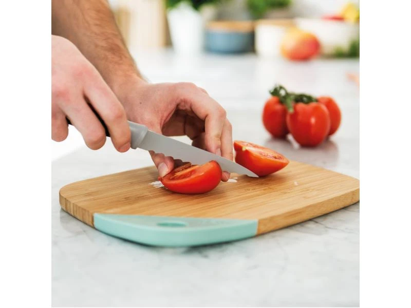 Einen frisch gebackenen Bagel oder weiche Sandwichbrötchen schneiden Sie sie mit dem Leo-Universalmesser von BergHOFF ganz nach Belieben. Seine gezackte Klinge schneidet auch zartes Obst und Gemüse mühelos durch, ohne das Fruchtfleisch zu zerdrücken. Der weiche, komfortable Griff garantiert einen sicheren Halt, während die Schutzhülle die Klinge in perfektem Zustand hält und Ihre Hände schützt, wenn Sie in der Schublade nach dem Messer greifen.