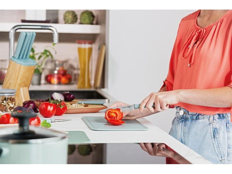 Zwischen Schälmesser und Kochmesser ist dieses praktische Universalmesser von Berghoff ein wahrer Tausendsassa. Vom Schälen mittelgrosser Früchte und Gemüse über das Schneiden von Zitrusfrüchten bis hin zum Aufschneiden von Sandwiches – die scharfe Klinge aus rostfreiem Stahl erledigt alles im Handumdrehen. Obendrein liegt der Griff sehr angenehm und sicher in der Hand, so dass Sie eine Vielzahl von Zutaten sicher schneiden, hobeln oder würfeln können. Wählen Sie zwischen zwei passenden Farben und verschönern Sie Ihre Küche durch die hochglänzenden Messergriffe