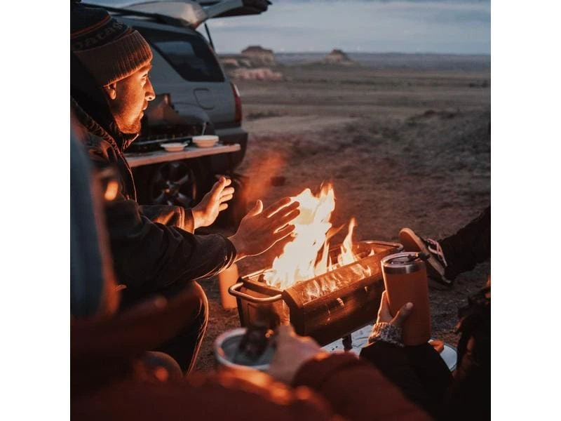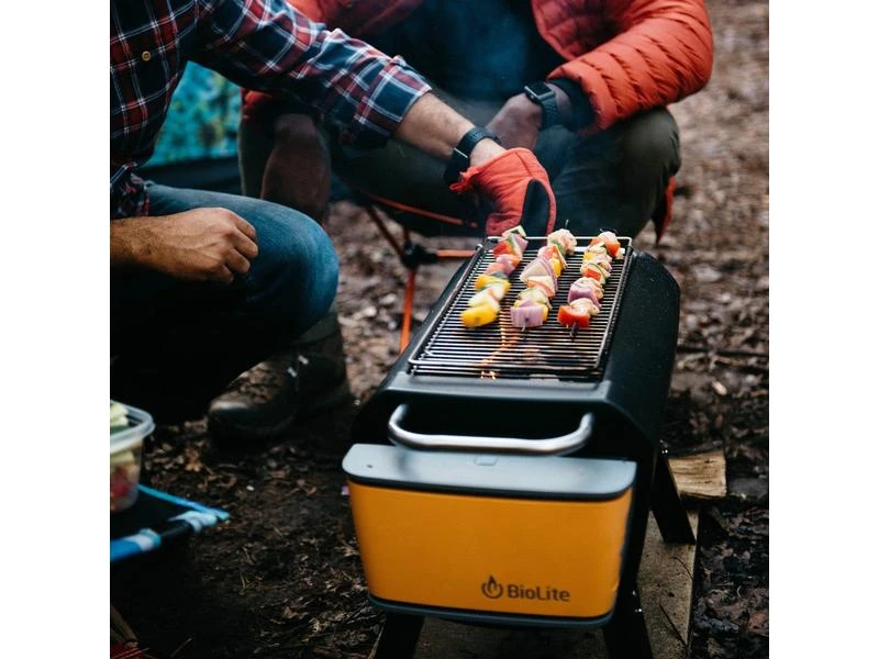 Der BioLite FirePit ist aus gleich mehreren Gründen eine ziemlich praktische Ergänzung zur Campingausstattung oder auch für den Grillabend auf dem Balkon oder der Terrasse: Er funktioniert mit Holzscheiten oder Kohle, produziert effektiv keinen Rauch und sorgt dank ausgeklügelter Technik für ein optimales Feuer. Dafür ist die smarte Feuerstelle mit einem Ventilator und 51 Luftdüsen im Inneren ausgestattet. Während sich Letztere an verschiedenen Stellen im Innenraum des FirePit+ befinden und das Feuer mit Sauerstoff versorgen, sitzt der Ventilator im Power-Pack an der Seite des smarten Camping-Tools. Wie stark das Feuer belüftet wird, kann man direkt über ein einfaches Kontrollpanel am Power-Pack kontrollieren – oder die Intensität in vier Stufen via App regulieren. Wird der Power-Pack nicht zum Feuer machen benutzt, kann er als Energiespender für Smartphone, Tablet und Co. dienen.