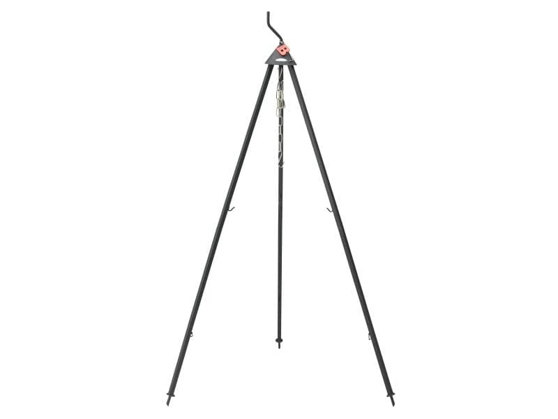 Nutzen Sie dieses 3-Bein von Bon-fire, um Speisen über dem Lagerfeuer oder einer Feuerschale zuzubereiten. Der 175 cm hohe Ständer lässt sich dank seiner spitzen Füsse sicher im Boden verankern. Mittels der Ketten können Sie Roste oder Töpfe über dem Feuer aufhängen und in der Höhe justieren.