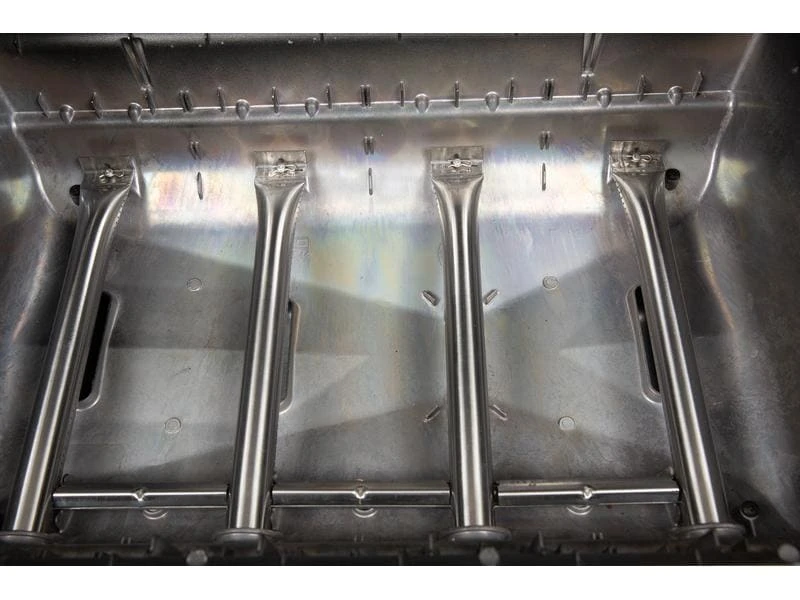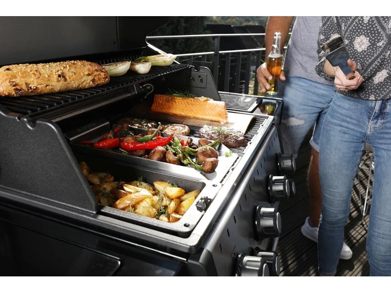 11.4 kWh Edelstahlrohrbrennersystem, 2.7 kWh starker Seitenbrenner, 4.4 kWh hinterer Drehspiessbrenner aus Edelstahl.