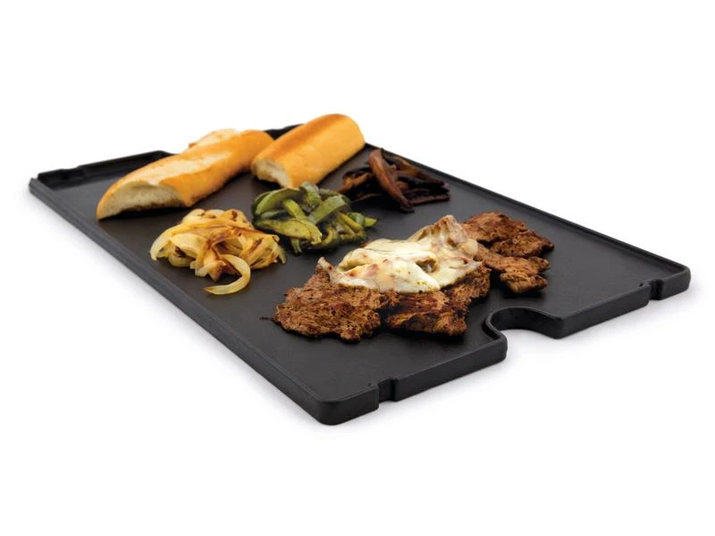 Der Backplatte von Broil King ist aus Gusseisen gefertigt, sodass Sie mit hoher Langlebigkeit zu überzeugen weiss. Sie können die Platte wenden und von beiden Seiten benutzen. Die glatte Seite eignet sich vor allem für das Grillen von Fleisch und eine geriffelte Fläche auf der anderen Seite für Fisch und Gemüse.