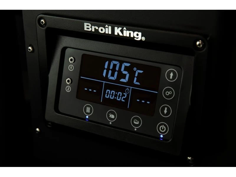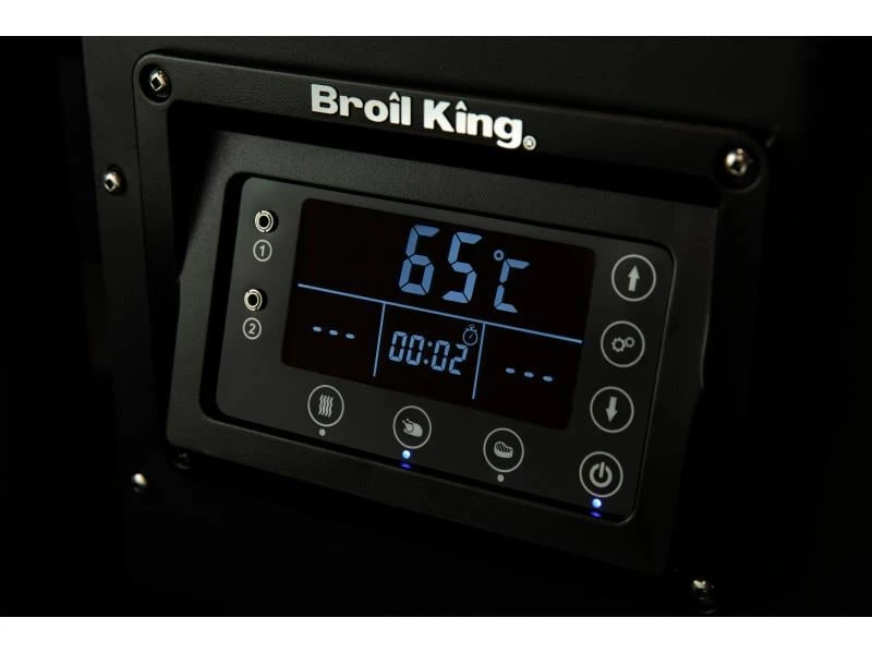 Der Smoker verfügt über einen Temperaturbereich von 82 bis 316 °C. Stellen Sie die Temperatur aufs Grad genau ein. Die Broil King App (erhältlich für iOS und Android) ermöglicht die Steuerung mittels WLAN oder Bluetooth. Alternativ zur Bedienung via Smartphone können auch am digitalen Bedienelement am Pelletgrill alle Einstellungen vorgenommen werden. Mit den Kurzwahltasten navigieren Sie durch die Programme Roast, Sear und Grill.