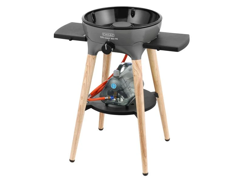 Der neue Citi Chef 40 FS aus dem Hause Cadac ist ausgestattet mit dem neuen GreenGrill keramikbeschichteten Grillrost aus Aluminium, um die Wärme ideal zu verteilen. Der kompakte Grill ist dank der herausnehmbaren, emaillierten und spülmaschinenfesten Fettauffangschale leicht zu reinigen. Die schwarzen Seitentische sind abnehmbar und verfügen über Aufbewahrungshaken, um die Grillzange stehts griffbereit zu haben. Ein Topfständer ist inklusive! So können Sie z.B. Töpfe, die CADAC Paella Pfanne oder einen Pizzastein nutzen. Betrieben mit einer Gewindekartusche mit EN417-Druckminderer, dem Cadac Power Pak oder einer nachfüllbaren Gasflasche (nicht im Lieferumfang enthalten).