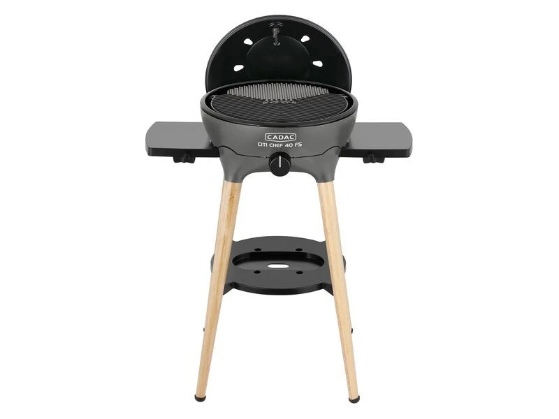 Der neue Citi Chef 40 FS aus dem Hause Cadac ist ausgestattet mit dem neuen GreenGrill keramikbeschichteten Grillrost aus Aluminium, um die Wärme ideal zu verteilen. Der kompakte Grill ist dank der herausnehmbaren, emaillierten und spülmaschinenfesten Fettauffangschale leicht zu reinigen. Die schwarzen Seitentische sind abnehmbar und verfügen über Aufbewahrungshaken, um die Grillzange stehts griffbereit zu haben. Ein Topfständer ist inklusive! So können Sie z.B. Töpfe, die CADAC Paella Pfanne oder einen Pizzastein nutzen. Betrieben mit einer Gewindekartusche mit EN417-Druckminderer, dem Cadac Power Pak oder einer nachfüllbaren Gasflasche (nicht im Lieferumfang enthalten).