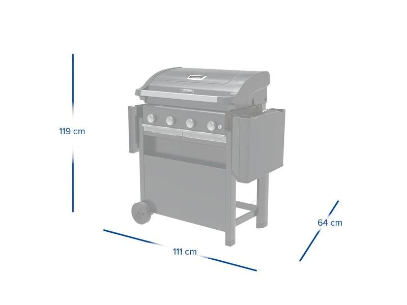 | Zusatzausstattung | Drehspiess Option, Warmhalterost, Seitenablagen (abklappbar) |