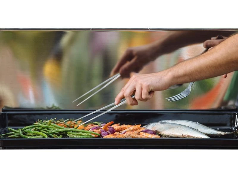 Die dünne Edelstahl Premium Plancha Zange ist ideal für eine Präzise Handhabung mit Essen. Einige Lebensmittel wie Schalentiere oder fein gehacktes Gemüse sind schwer zu greifen. Dank der Zange wird kein Lebensmittel mehr widerstehen.