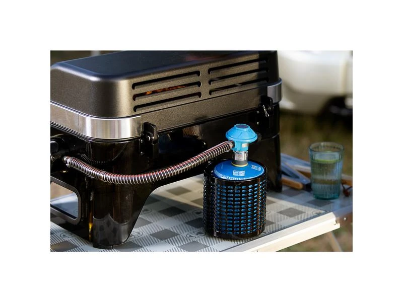 Der schicke und mobile Attitude 2go CV vereint viele Eigenschaften eines grossen Gasgrills, obwohl er durch seine Masse und den Kartuschenbetrieb der optimale Begleiter für jeden Campingausflug ist. Durch den eleganten Deckel garantiert er ein schnelles und effektives Aufwärmen des Grillinnenraums. Das integrierte Thermometer ermöglicht eine genaue Kontrolle der Temperatur. Dank des montierten Schlauches und der Halterung für die Kartusche kann der Grill ohne Aufbau schnell und unkompliziert genutzt werden. Eine Reinigung wird durch die von vorne entnehmbare Fettauffangschale ebenfalls vereinfacht.