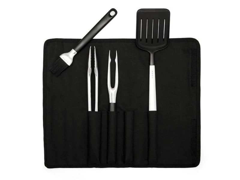 - Besteckbox: Grillzange, Pfannenwender, Pinsel und Fleischgabel