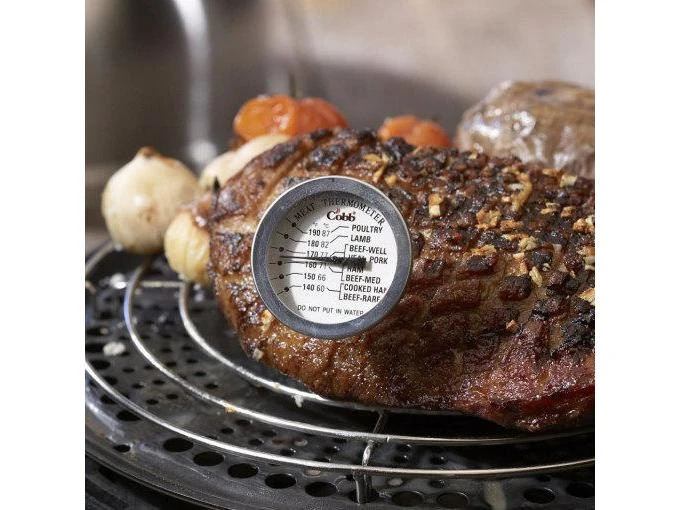 Mit diesem Bratenthermometer von COBB können Sie ganz einfach feststellen, wie hoch die Temperatur Ihres Grillguts ist. Stecken Sie das Thermometer mittig in das Fleisch und warten Sie einen Moment, bis das aus Edelstahl gefertigte Messgerät die Temperatur angenommen hat und anzeigt. Auf der Anzeige können Sie die verschiedenen empfohlenen Temperaturen ablesen, zu denen Sie unterschiedliche Fleischarten grillen sollten.