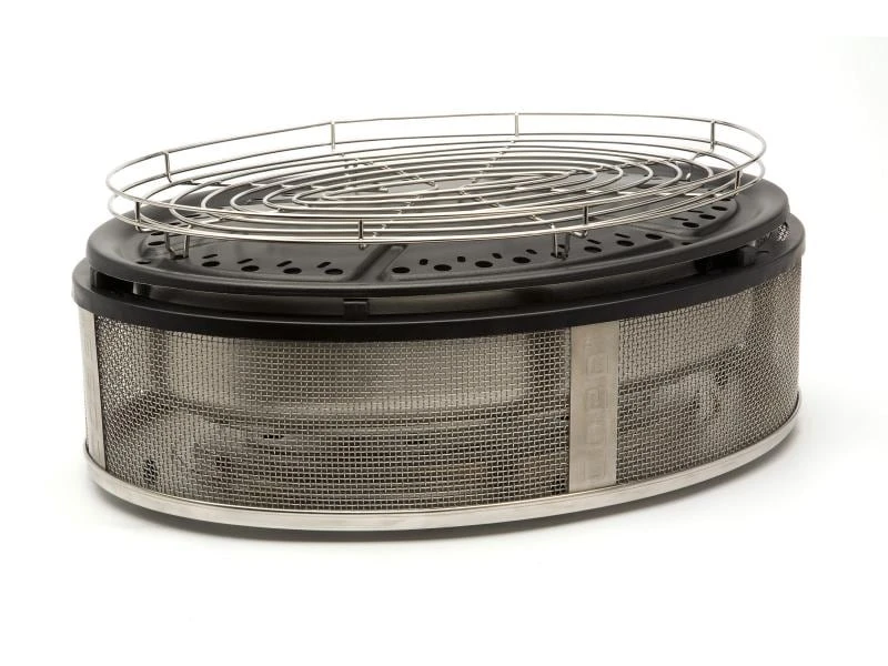 Der Cobb Supreme ist ein rauchfreier Holzkohlegrill, der sich auch für grössere Grillpartys mit bis zu acht Personen eignet. Die 48 x 34 cm grosse Grillfläche bietet ausreichend Platz für zwei bis drei Hähnchen oder grössere Bratenstücke. Zum Betrieb benötigen Sie nur zwei Cobble Stones oder alternativ etwa zwölf bis 20 Holzkohlenbriketts.