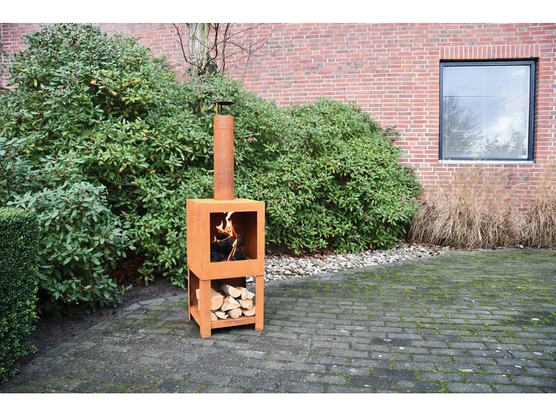 Esschert Design Terrassenofen mit Holzlager, Rostbraun