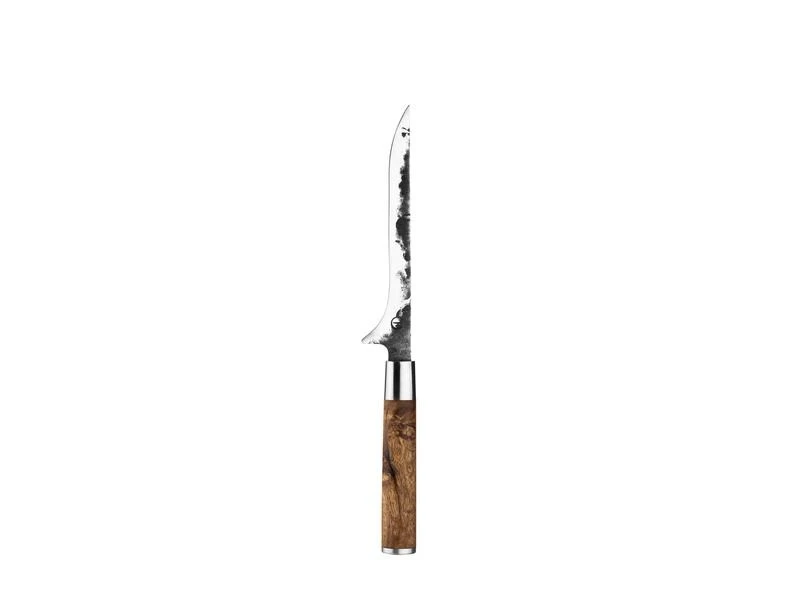 Das Design der VG10-Serie von Forged basiert auf der Inspiration aus der Welt der Messer par excellence «Japan». Dies spiegelt sich im Übergang von der Klinge zum Griff wider. Diese Serie ist nach der Art des für die Klinge verwendeten Stahls benannt. Der japanische VG10-Stahl bietet eine angenehme Härte von stolzen 60 Rockwell. Die Messer sind in 5 Schichten geschmiedet, was den typischen Look, den Sie bei Damastmessern sehen, dezent vermittelt. Diese Techniken sorgen für Schärfe und Schnittkomfort. Die Messer haben einen speziellen Griff aus luxuriösem Wurzelholz und werden mit einer braunen ledernen Messerhülle geliefert.