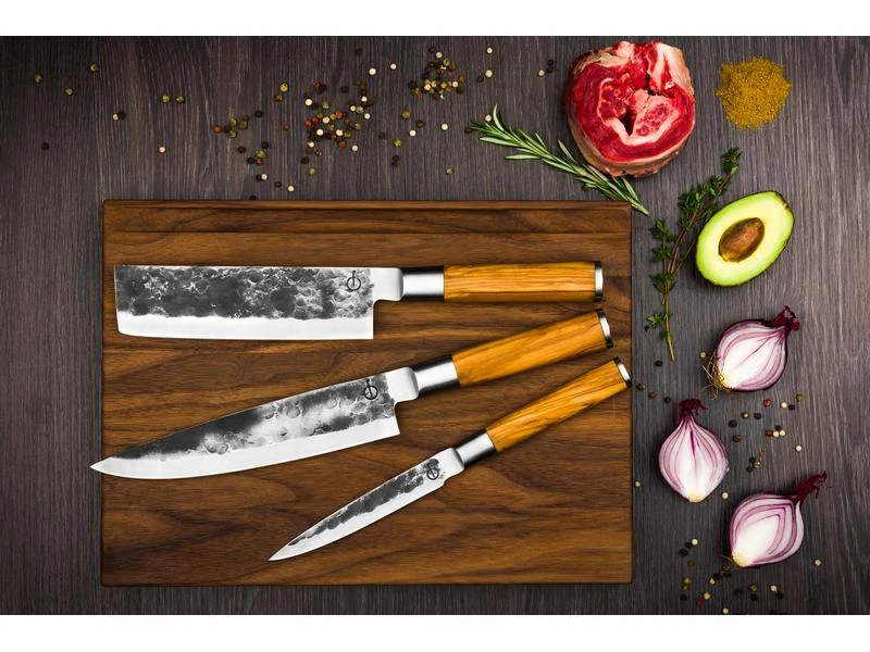 - Set Inhalt: Kochmesser 20.5, Hackbeil 17.5, Universallmesser 12.5 cm