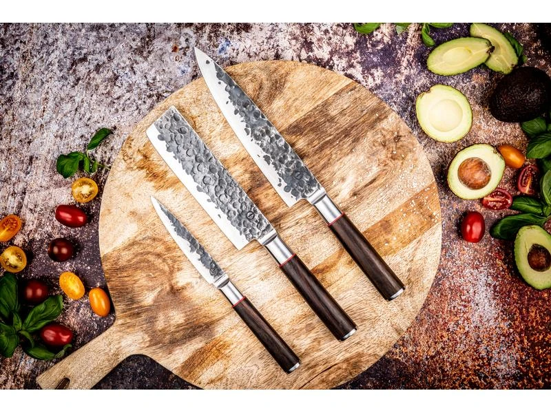 - Set Inhalt: Kochmesser 20.5, Hackbeil 17.5, Universallmesser 12.5 cm