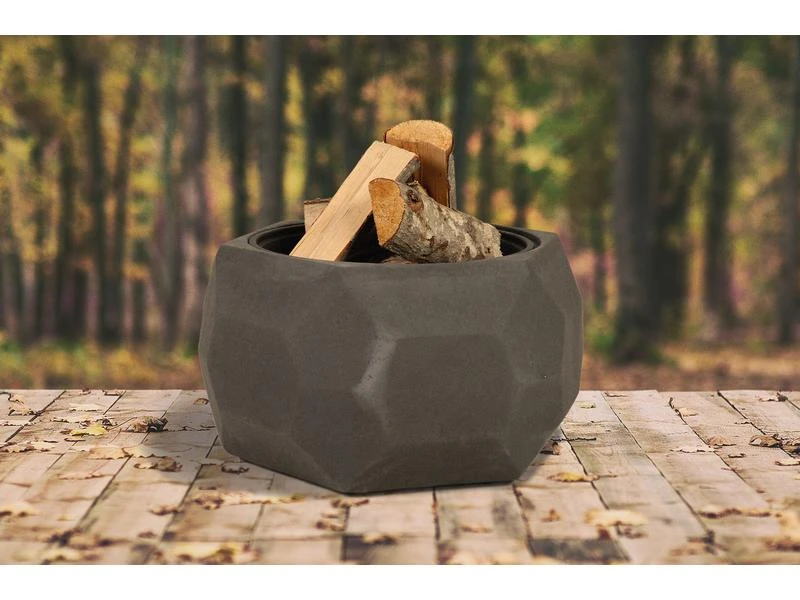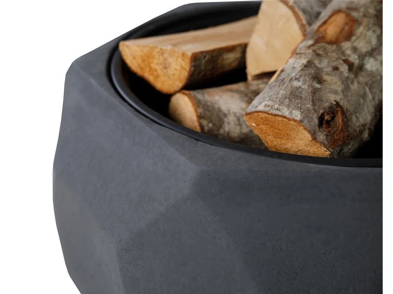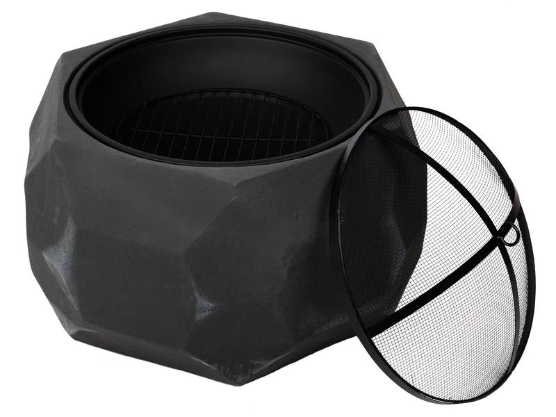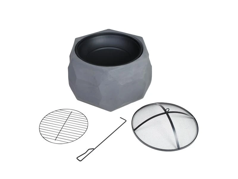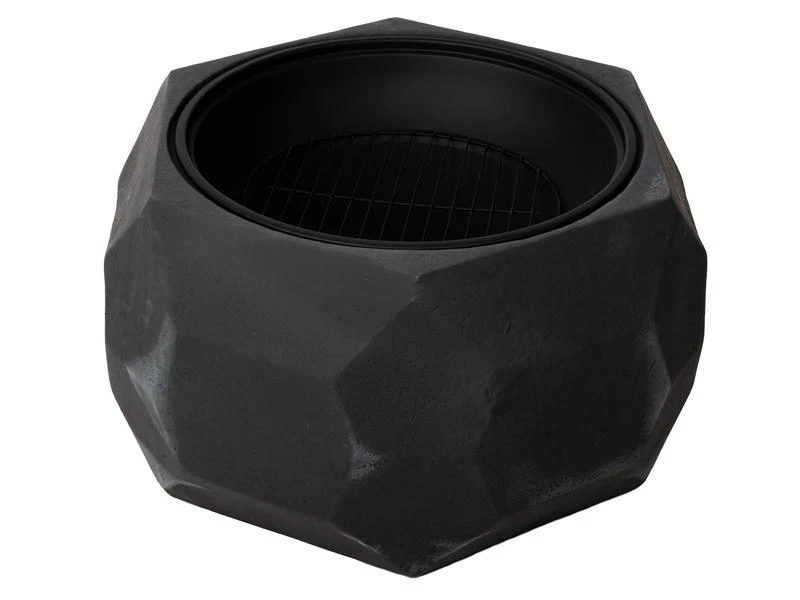 Die moderne Feuerschale in attraktiver, kantiger Diamant-Optik hat Potential. Sie sorgt nicht nur für Wärme im Aussenbereich, sondern auch für ein stimmungsvolles Ambiente an kühlen Sommerabenden oder beim winterlichen Outdoor-Vergnügen. Mit ihrer 18-Schüssel und dem Holzkohlerost eignet sie sich hervorragend als Hitzespender und ist dabei auch noch schön anzusehen. Ausserdem gehört ein stilvoller Deckel zum Lieferumfang. Wer die Glut schüren oder die Kohle gleichmässig verteilen möchte, ist mit dem zugehörigen Schürhaken bestens bedient. Alle Bestandteile sind aus Stahl in der Farbe Anthrazit gefertigt, ausschliesslich die Schale selbst besteht aus hitzebeständigem Magnesia- Kunststein. Mit Leichtigkeit lässt sich das ca. 1.4 kg wiegende Objekt flexibel von einem Ort zum anderen versetzen, denn auch wenn es äusserlich schwer aussieht, so hat es doch ein verhältnismässig geringes Gewicht. Insgesamt betragen die Masse ca. 60 x 36 x 60 cm. Ideal für Freunde von Lagerfeuerromantik.