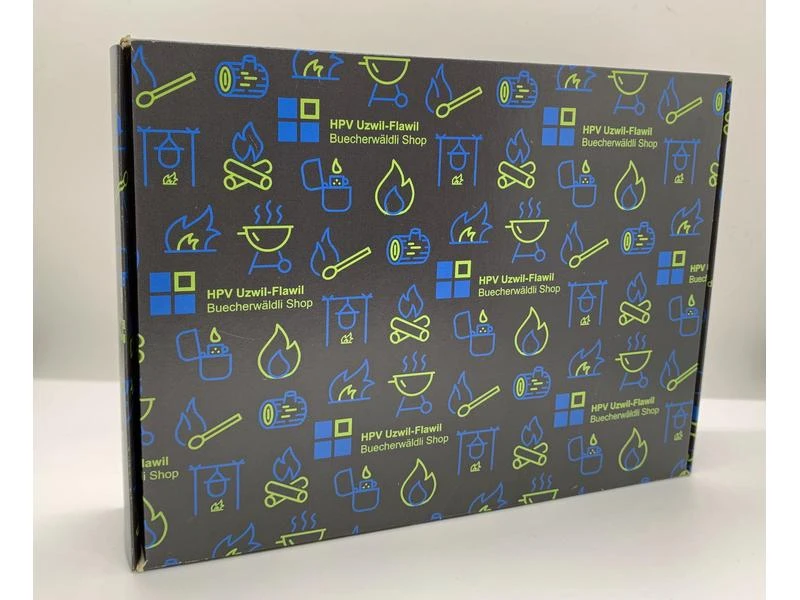 Die handgefertigten Anzündhilfen der HPV Uzwil-Flawil sind der absolute Brenner. Die Anzündhilfe- Box enthält 40 Anzündhilfen und ist ein absolutes Muss für den heimischen Ofen, die Feuerstelle im Garten oder bei einem Ausflug in den Wald. Zuerst wird das Restholz gespalten und dann mit einer Schnur zusammengebunden. Nach einem heissen Wachs- Bad werden sie nach dem abkühlen mit Sorgfalt verpackt.