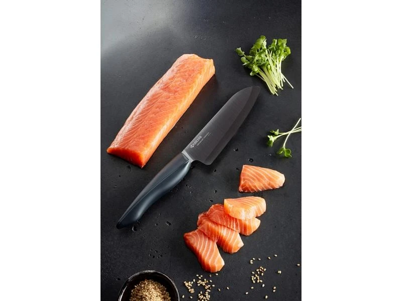 Das Santoku, auf Deutsch «Messer der drei Tugenden», ist ursprünglich eine japanische Klingenform für ein Allzweckküchenmesser. Charakteristisch ist die stumpfe Oberkante des Messers, welche eine Linie mit dem Griff bildet. Des Weiteren steht die breite Klinge weit unter dem Griff hinaus, wodurch genügend Platz für die Finger vorhanden ist.