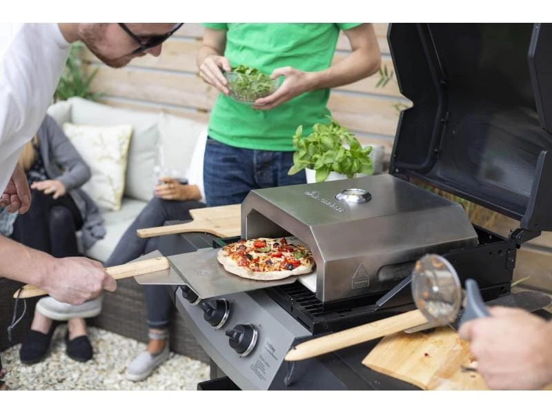 Der BBQ-Pizzaofen von La Hacienda ist ein Premium-Grillzubehör, das Ihren Gas- oder Holzkohlegrill in einen Gourmet-Pizzaofen im Freien verwandelt. Der unglaublich vielseitige und innovative Pizzaofen überschreitet die Grenzen des Grillierens und bäckt Ihre hausgemachte Pizza in wenigen Minuten perfekt. Der BBQ-Pizzaofen beschränkt sich aber nicht nur darauf: Er eignet sich auch zum Kochen von Fisch, Fleisch und Gemüse und zum Backen von Brot, Keksen und mehr.