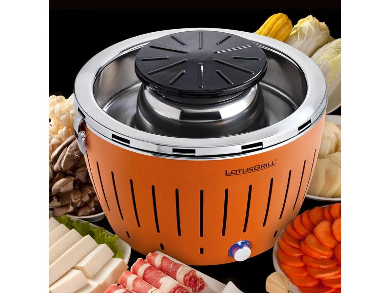 Mit dem LotusGrill Fondue verwandeln Sie Ihren LotusGrill in ein Rechaud mit Caquelon zum geselligen und stimmungsvollen Zubereiten von Fleisch und Gemüse. Sie braten das Fleisch auf der Grillplatte und bereiten gleichzeitig in der Fondueschale Gemüse, Pilze, Fisch und andere Delikatessen schnell und gesund zu. Der austretende Fleischsaft läuft über die gewölbte Grillplatte in die Brühe und würzt diese zusätzlich.
