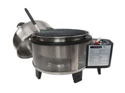 Der Gartengrill XXL der erste grosse rauchfreie Holzkohlegrill aus dem Hause LotusGrill. Er ist quasi der grosse Bruder der bereits vielfach bewährten LotusGrills. Dank der geräumigen Grillfläche mit einem Durchmesser von 57.6 cm können Sie auch mehrere Personen problemlos bewirten. Zwei eingebaute, batteriebetriebene Lüfter dienen der Hitzeregulierung und zur Versorgung der Kohle mit Frischluft. Diese lässt sich in den beiden getrennten Holzkohlebehältern getrennt anfeuern. Bereits nach etwa 5 Minuten ist der Grill einsatzbereit.