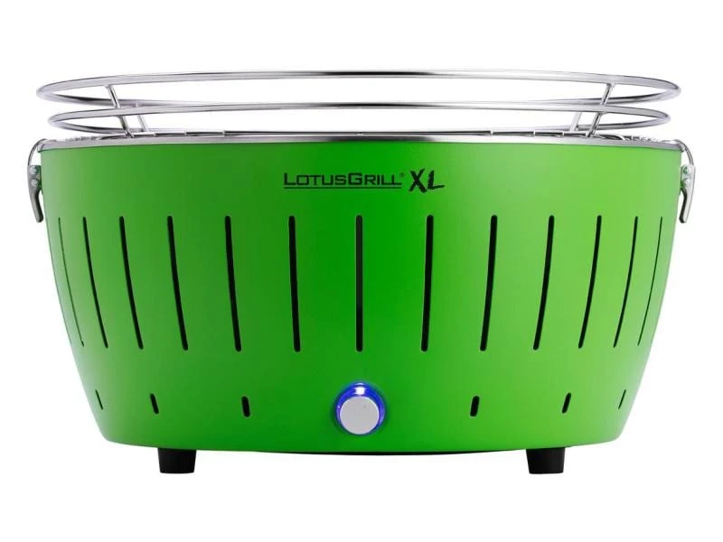 Lieben Sie es, mit Holzkohle zu grillieren und möchten Sie das auch auf dem Balkon tun, dann stellt ein LotusGrill eine praktische Lösung für Sie dar. Die XL-Ausführung des runden, rauchfreien Grills wiegt nur 6,5 kg und verfügt dennoch über einen Grillrost mit gut 40 cm Durchmesser; er ist somit geeignet für bis zu zehn Personen. Der eingebaute Lüfter kann mit den mitgelieferten Batterien betrieben werden, und zum Lieferumfang des portablen Grills gehört ausserdem eine farblich passende Nylontasche.