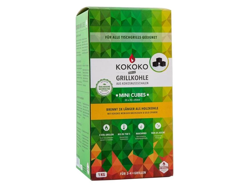Mit unseren kleinen Würfeln in KOKOKO-Qualität haben Sie ein richtig schönes Grillerlebnis. Die Kokoskohle-CUBES (25 * 25 * 25 mm) passen perfekt in den Kohlekorb von Tischgrills mit integriertem Lüfter. Damit ist es die perfekte Grillkohle für z. B. Lotusgrills. Die MINI-CUBES halten nicht nur viel länger als normale Holzkohle, sie rauchen und riechen auch nicht. Alles, was Dir in die Nase steigt, ist der Duft von Deinem köstlichen Gegrillten. Mit leckeren Saucen, Gewürzen und Dip’s angerichtet schmeckt es dann gleich doppelt lecker!