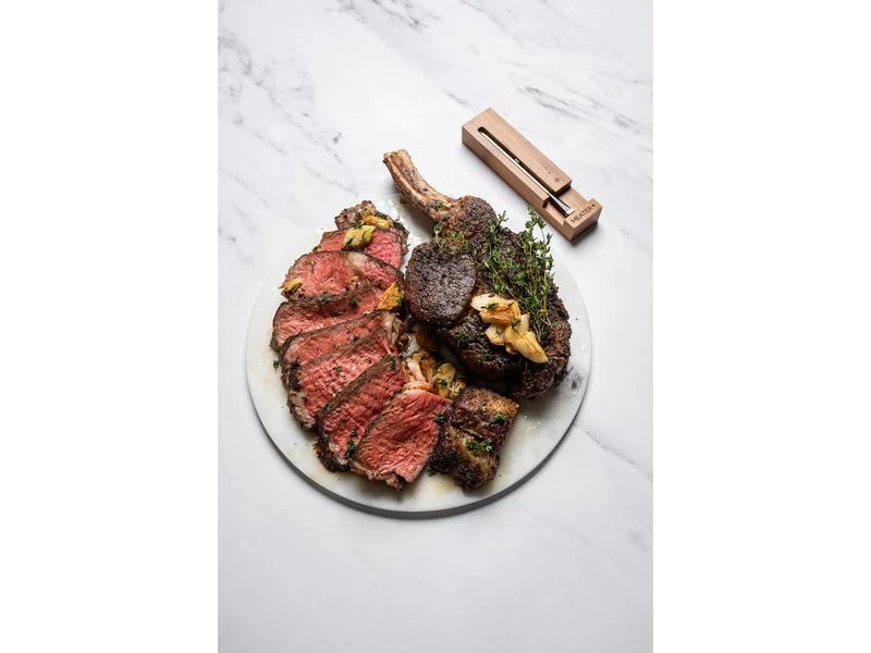 Erzielen Sie beim Braten von Fleisch oder Fisch stets perfekte und gleichmässige Ergebnisse: Mit dem kabellosen Fleischthermometer Meater ist das bequem möglich. Lesen Sie die Innen- und Aussentemperatur (bis 100 bzw. 275 °C) auf Ihrem Smartphone ab; leicht können Sie genau im richtigen Moment reagieren und bei der Zubereitung individuelle Vorlieben berücksichtigen. Speichern Sie Ihre besten Garvorgänge und wiederholen Sie diese mit einem einzigen Tippen; erhalten Sie einen Alarm, wenn es fertig ist.