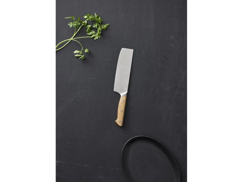 Das Nakiri-Messer Foresta von Morsö ist ein klassisches Gemüsemesser aus Asien mit einem markanten, rechteckigen Klingenprofil, das eine unvergleichliche Schneidfähigkeit, Kontrolle und Stabilität gewährleistet. Das Messer eignet sich zum Hacken, Schneiden und Zerkleinern aller Arten von Gemüse. Darüber hinaus eignet sich das Messer auch hervorragend zum Schneiden von Fleisch und Geflügel. Die Klinge besteht aus rostfreiem Qualitätsstahl und der Griff aus geölter Eiche, die eine Patina entwickelt und umso schöner wird, je öfter sie benutzt wird. Der Holzgriff ist aus einem einzigen Stück Holz gefertigt und liegt gut in der Hand. Mit warmem Wasser und milder Seife waschen und sofort von Hand trocknen. Nicht spülmaschinengeeignet. Der Holzanteil des Produkts ist FSC-zertifizierte Eiche.