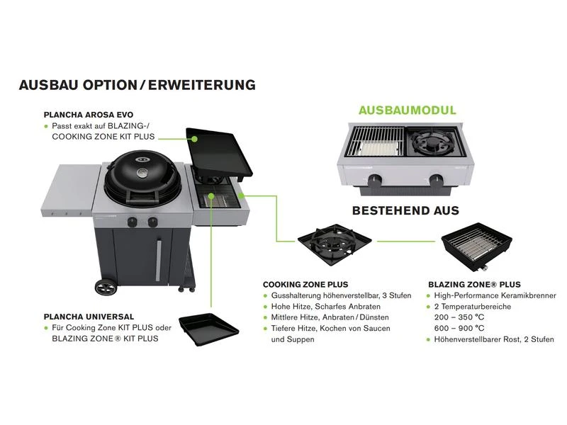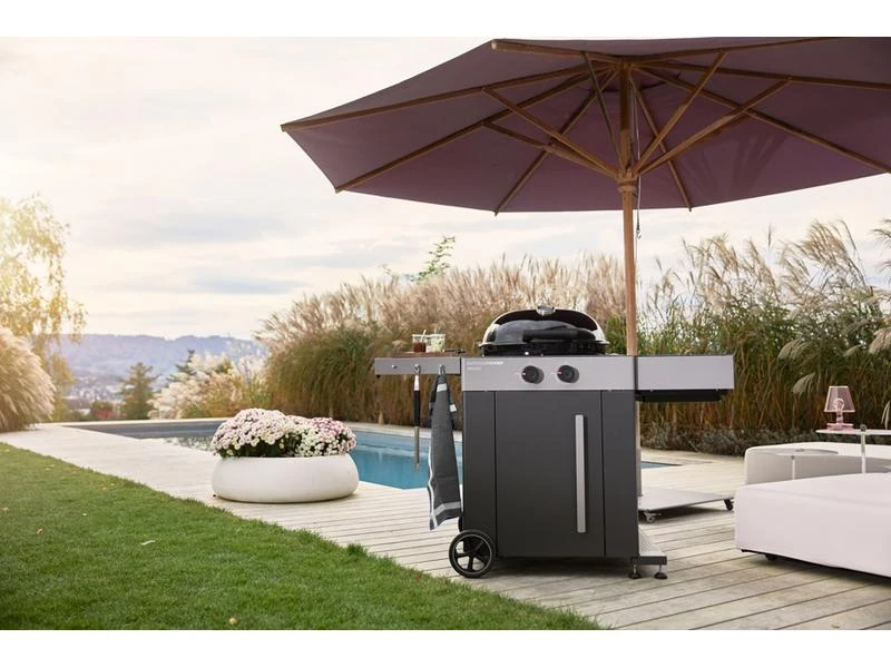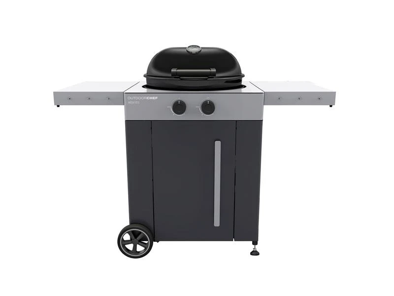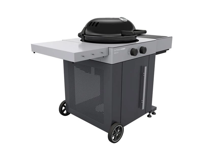 Das klare und moderne Design von Outdoorchef zeichnet auch diesen Gas-Kugelgrill aus. Die pulverbeschichtete Stahlverkleidung in zwei Grautönen ist 4-seitig verkleidet und verleiht dem Grill eine robuste Basis. Ein massives Alu-Druckgussscharnier sorgt für eine Premium Haptik beim Öffnen und Schliessen des Grills. Durch das einzigartige Trichtersystem in der Kugel und dem speziell entwickelten Blazing-/Cooking Zone Kit Plus als Ergänzung, können alle Grill- und Küchenklassiker mit diesem Grillmodell im Freien zubereitet werden. Der AROSA 570 G EVO Grey Steel wird so zur Aussenküche, die keine Grenzen kennt. Wenn der Grill nicht im Einsatz ist, lassen sich beide Seitenablagen platzsparend nach unten herunterklappen. Der Grill verfügt über zwei grosse, gummierte Räder, durch diese das Gerät auf jedem Untergrund bequem umplatziert werden kann.