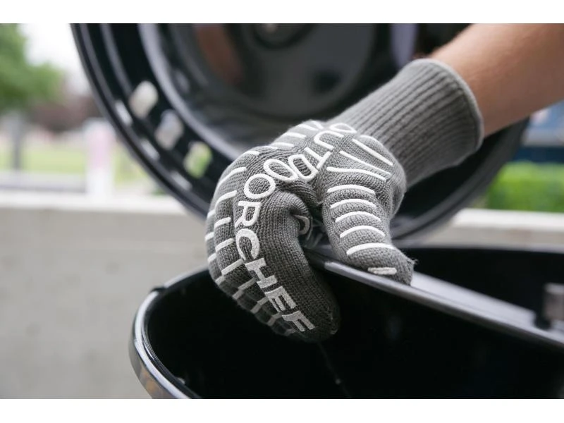 Der Grillhandschuh von Outdoorchef schützt Sie vor Temperaturen bis zu 250 °C, sodass auch die Easy Flip und Easy Slide Trichter von Outdoorchef sicher angefasst und gedreht werden können. Der Handschuh besteht aus einer Polyester-/Baumwollmischung und besitzt eine Silikonbeschichtung für besonders guten Halt. Bei Verschmutzungen kann der Handschuh per Hand gewaschen werden.