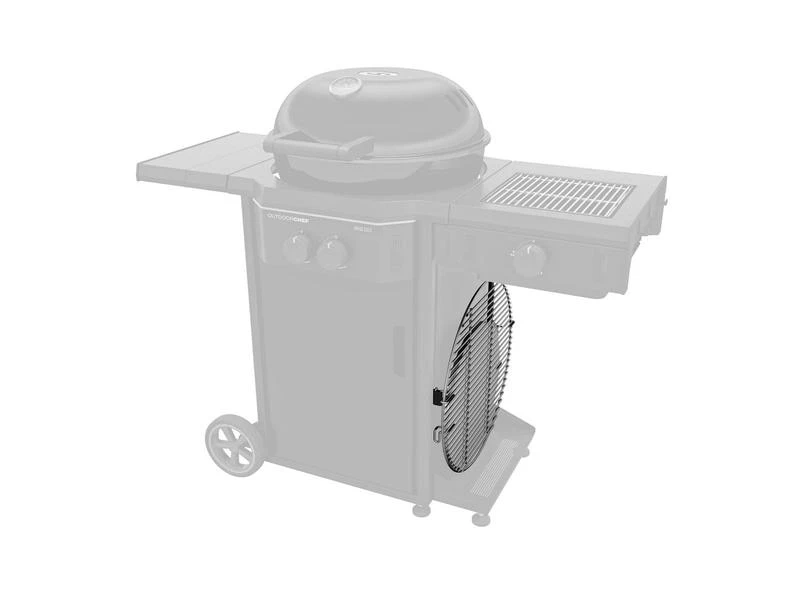 Pizzastein und zusätzlicher Grillrost können direkt am Grill verstaut werden. Praktisch auch der Fixierbügel für eine Küchenrolle. So ist alles griffbereit.