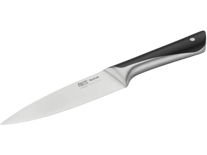 Jamie Oliver und Tefal, das perfekte Paar in der Küche. Jamie bringt Leidenschaft und Können mit und Tefal sorgt für Technologie und Leistung. Gemeinsam stellen hochwertige und bewährte Produkten her. Die intelligente Wahl für Ihre Wohlfühlkost. «Hier haben wir ein besonders nützliches Trio. Verwenden Sie ihr vielseitiges Kochmesser, um effizientes Gemüse der Saison, hochwertiges Fleisch, frische Kräuter und vieles mehr zu schneiden.» Jamie Oliver
