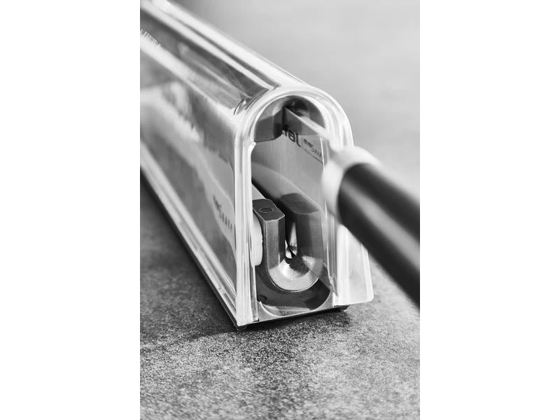 Ever Sharp von Tefal ist die sicherste und innovativste Lösung zum Schneiden und Nachschärfen. Dank der exklusiven Schleiftechnologie* der Abdeckung des Küchenmessers, wird die Klinge automatisch im richtigen Winkel und nach jedem Gebrauch geschärft. Durch das integrierte Verschlusssystem bleibt das Messer fest verschlossen und wird erst wieder geöffnet, wenn Sie es auf den Griff nach unten drücken. Dieses vielseitige Chef-Messer einer Länge von 16.5 cm aus deutschem Edelstahl ist besonders langlebig und lässt beim täglichen Zubereiten von Gerichten keine Wünsche offen. Dank des beeindruckenden Designs kann Ever Sharp auf jeder Arbeitsfläche aufgestellt werden. *Patent angemeldet