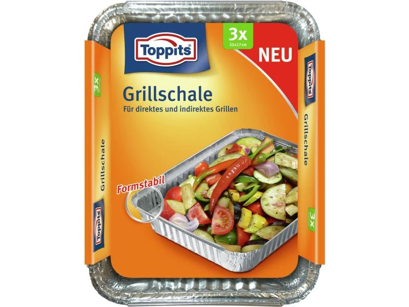 Die Toppits Grillschalen sind vielseitig einsetzbar. Die hitzebeständigen und formstabilen Aluminium-Schalen lassen sich ideal zum direkten oder indirekten Grillen von Gemüse, Fisch oder Geflügel einsetzen. Alternativ können die Schalen auch zum Aufbewahren von Lebensmitteln oder zum Auffangen von Flüssigkeiten wie Marinade und Fett unter dem Grillrost verwendet werden.