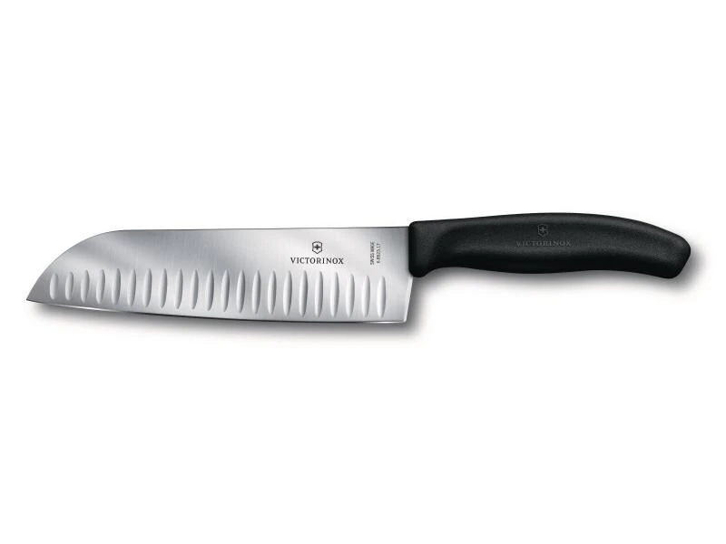 Ob Käse, Gemüse oder Fleisch – mit dem Santokumesser von Victorinox bekommen Sie alles klein geschnitten. Das Messer besticht durch seine scharfe Klingemit Kullenschliff, die mit einem ansprechenden Design kombiniert wird. Bei der Optik hat sich der Hersteller von der japanischen Kultur inspirieren lassen und bietet Ihnen nun ein Messer, mit dem Ihnen Schneiden und Würfeln äusserst präzise von der Hand geht.