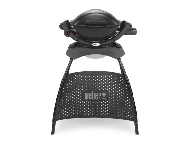 Der Weber Q 1000 Stand ist ein kompakter Gasgrill mit Unterstand und einer Rostfläche von 43 x 32 cm. Der Grillrost ist aus Gusseisen gefertigt und mit Porzellanemaillie überzogen. Zudem verfügt der Grill über eine wechselbare Fettauffangschale. Der Rahmen aus glasfaserverstärktem Nylon ist besonders leicht, zugleich robust und witterungsbeständig. Dank der abklappbaren Seitentische haben Sie alle notwendigen Geräte und Zutaten stets griffbereit.
