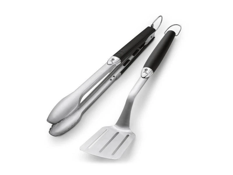 Mit diesem zweiteiligen Grillbesteck-Set als Zange und Wender haben Sie die beiden wichtigsten Werkzeuge für die Arbeit am Grill stets zur Hand. Beide sind aus Edelstahl gefertigt und besitzen ergonomisch geformte Kunststoffgriffe mit weicher Oberfläche.