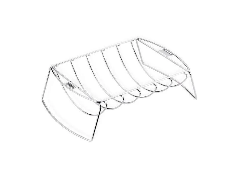 Der Weber Sparerib-Halter und Bratenkorb ist doppelt praktisch: Je nachdem, welche Seite Sie benutzen, lassen sich grössere Fleischstücke schonend garen oder Spareribs und Hähnchenschenkel platzsparend grillieren. Eine darunter stehende Alu-Tropfschale sammelt den Bratensaft.