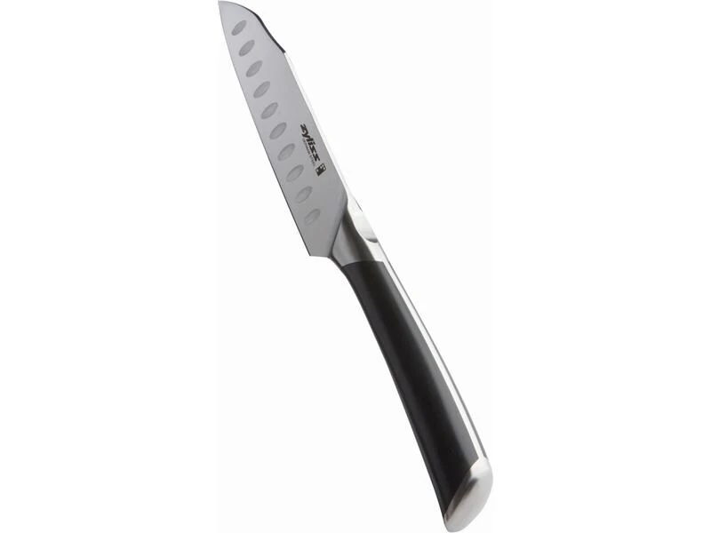 Das Mini-Santokumesser ist ein handliches Messer in der typischen japanischen Form. Es verfügt über eine Deutsche Edelstahlklinge welche eisgehärtet ist. Der angewinkelte Griff mit Fingerkerbe verspricht Komfort und Präzision.